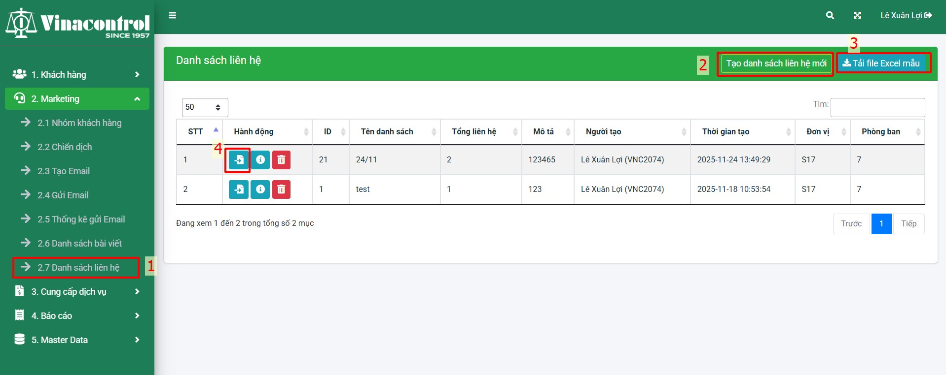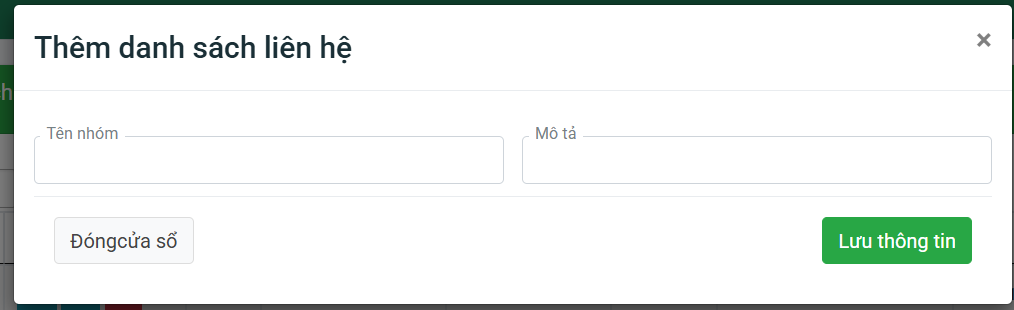 2.2 Bấm nút Tạo danh sách liên hệ mới -> điền tên và mô tả -> Lưu